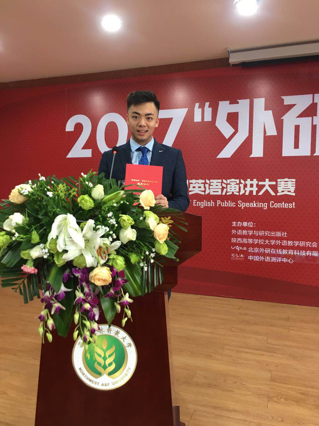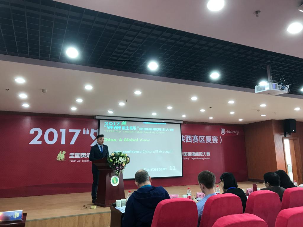 翻译研修学院连韧同学在刚刚结束的2017年“外研社杯”全国英语演讲比赛陕西省决赛中荣获一等奖,同场竞技的还有陕西师范大学、西北大学、西北工业大学及西安电子科技大学的同学。面对“985”、“211”,我们的学生仍然自信,因为我们可以骄傲地说:我来自西安翻译学院,我是研修人。
