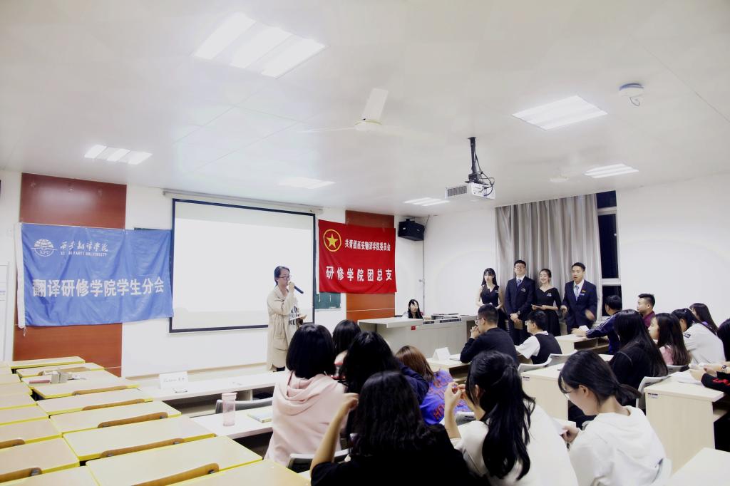 为进一步调动学生学习英语的兴趣和积极性,活跃校园文化氛围,由翻译研修学院学生分会主办的第三届翻译研修学院英语配音大赛于4月26日下午19时在2401教室举行。翻译研修学院高级翻译系行政主任蒋小军,教师梅杰、刘媛媛、张灵云及部分学生代表担任本次比赛的评委。