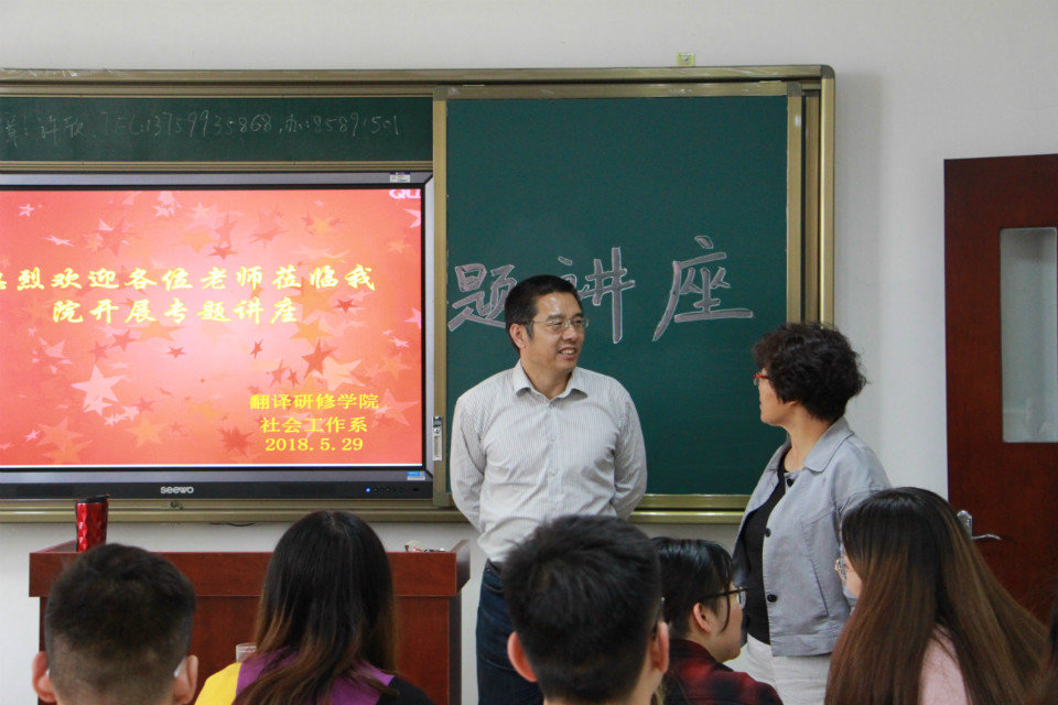 529日下午,陕西省妇源汇性别发展中心法人、陕西学前师范学院教育科学学院张俊先生受邀为翻译研修学院社会工作系的学生们以项目的设计与管理为专题开展知识讲座。