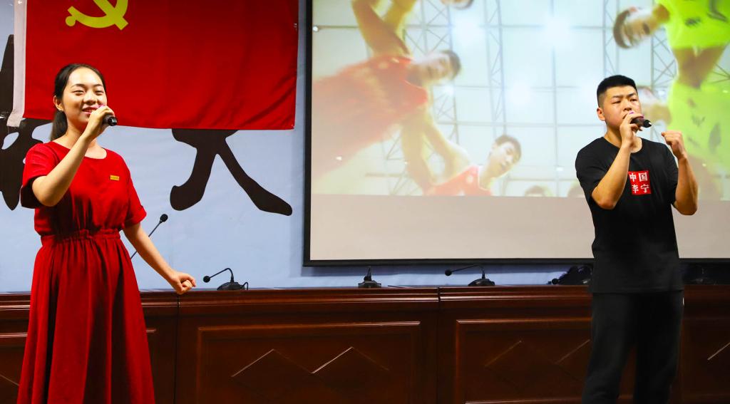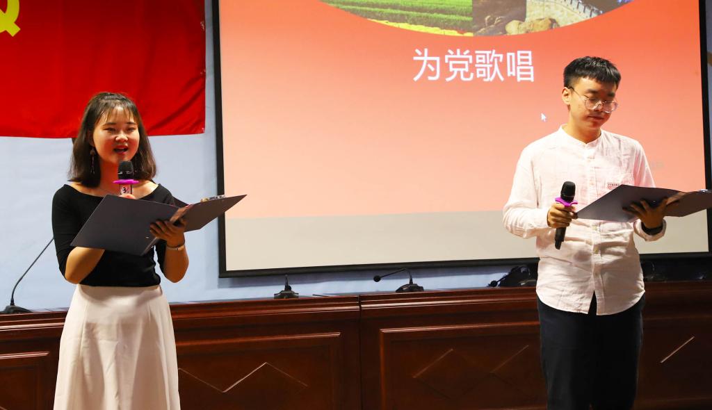 第五位演讲者是来自2016级社工系的入党积极分子李涣毅、李佳阳同学。他们带来演讲《为党歌唱》,这首为党而唱的歌,不仅唱出了党的精神,更道出了每位共产党员的心声,引起在场观众的共鸣。