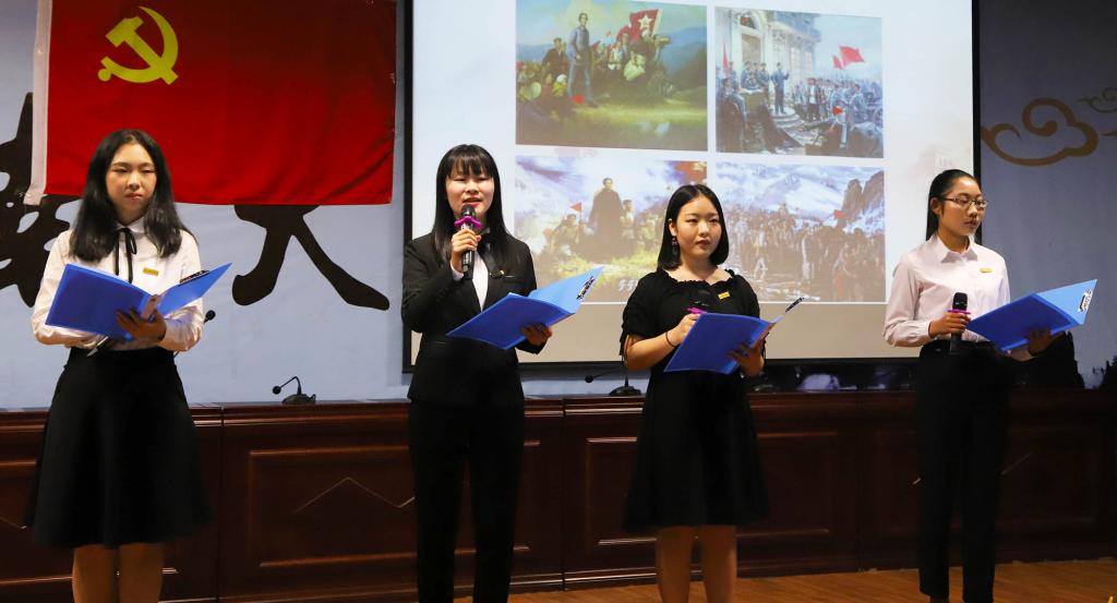 接下来,来自2015级社工系的积极分子,党员,以及预备党员带来演讲《火红的党旗》。随后,来自2017级的积极分子,党员以及预备党员,带来《让青春在党旗下飞扬》。他们的演讲深刻表达了一面旗帜就是一个时代,更是一段青春的记忆,一段民族的历史。