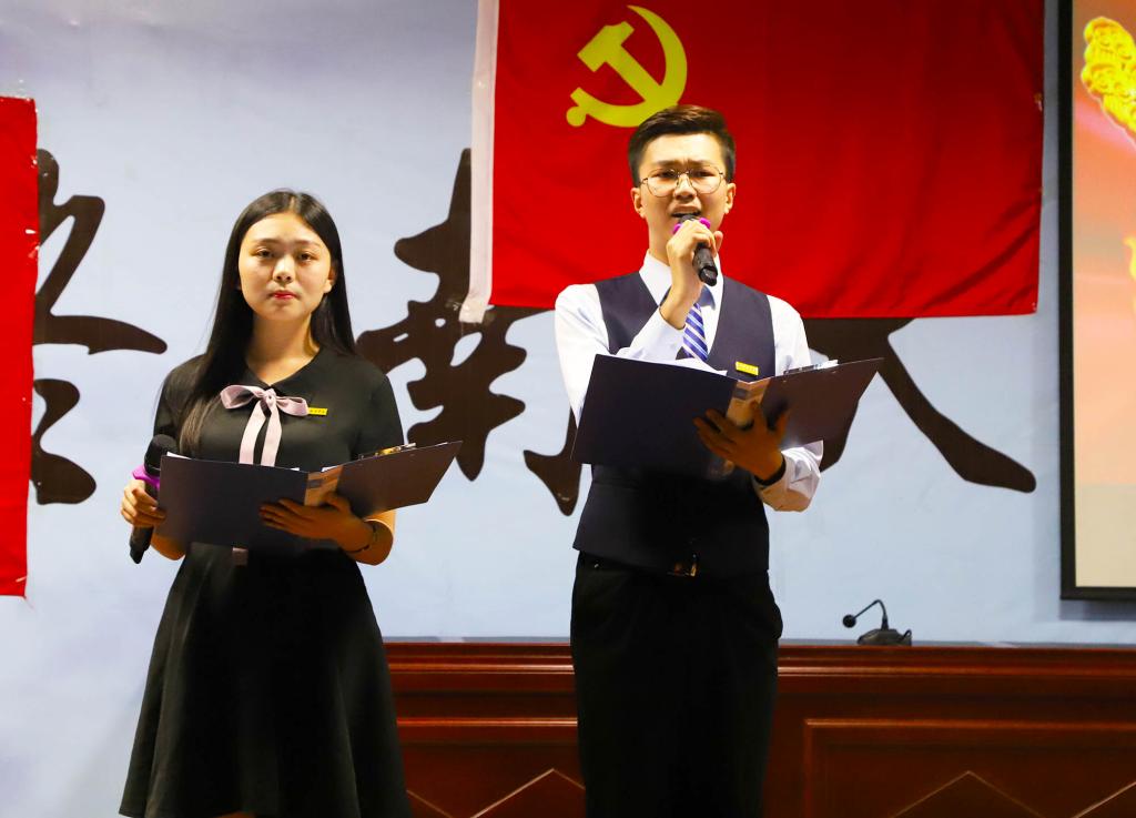 伴随着歌声的结束,活动进行第二项,来自我院各年级的同学们带来倾情演讲。首先由来自2017级入党积极分子杨萌萌以及高敏同学为我们带来《七一献诗》,这首诗深刻阐释了“没有共产党就没有新中国”的道理!