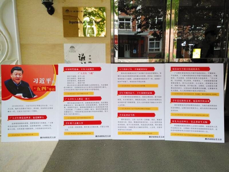2018年5月4日,正值“五四”青年节之际,翻译研修学院党支部由党支部书记蒋主任带领年轻教师党员,团总支书记梅杰老师带领学生党员分别学习了习近平总书记对青年一代的寄语。