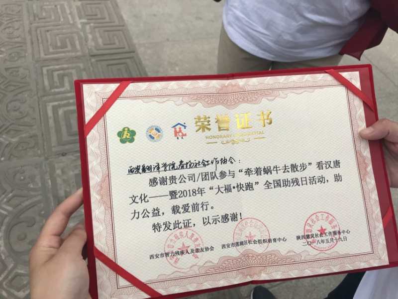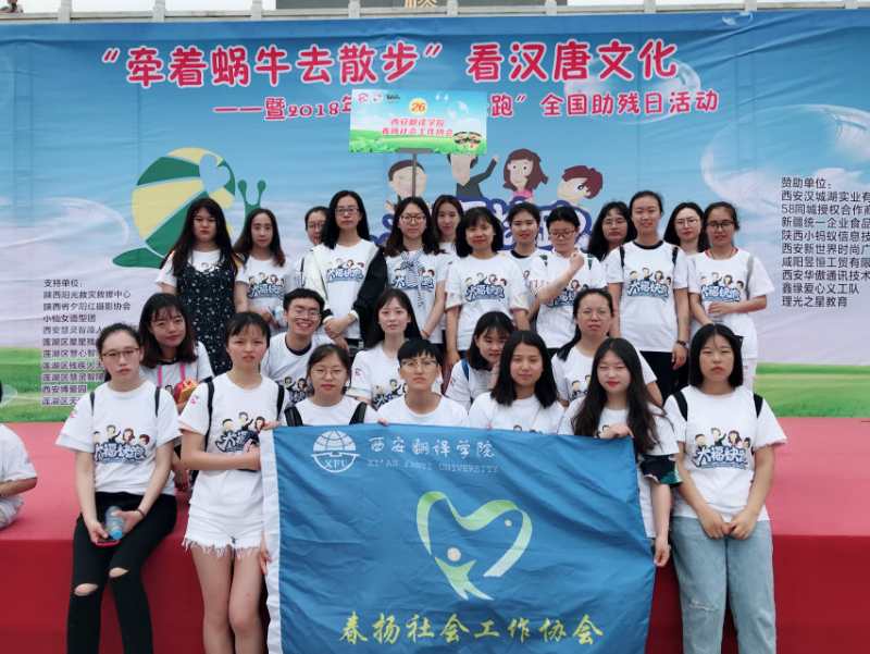 5月19日,一年一度的“牵着蜗牛去散步”看汉唐文化--暨2018年“大福快跑”全国助残日的活动在汉城湖开展,春扬社会工作协会作为大学生社团与其他48个团队共同走进心智障碍人士,了解并支持他们,一起从汉武大帝塑像后出发,绕湖一圈,全程大约四公里。